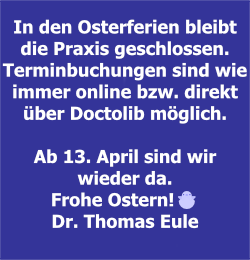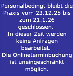 Bitte beachten Sie: Unsere Praxis macht Urlaub vom 18.08. bis 05.09.2025.